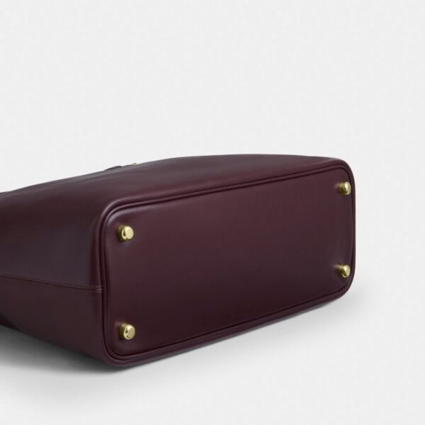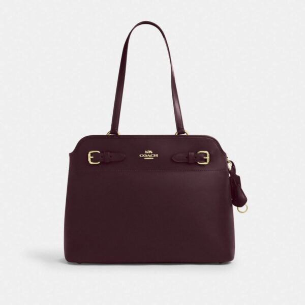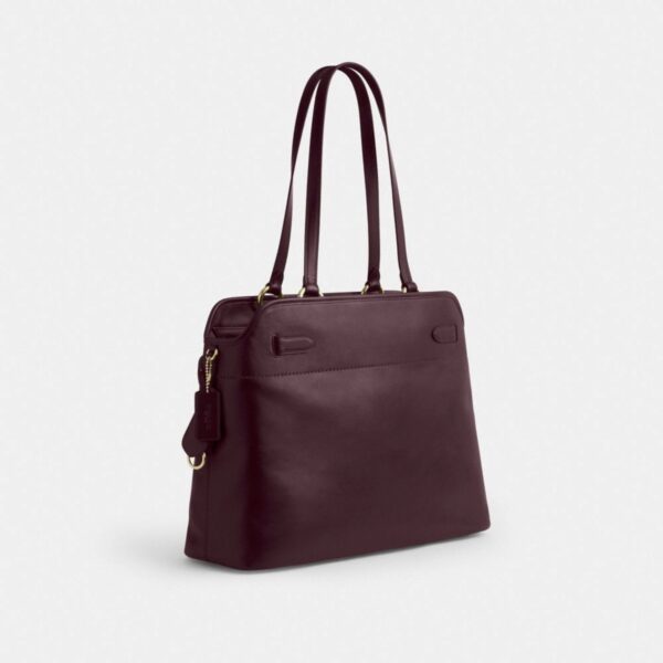 A timeless Coach Easton tote crafted in smooth burgundy leather, finished with elegant gold-tone hardware and refined buckle detailing. A structured silhouette designed for everyday sophistication.